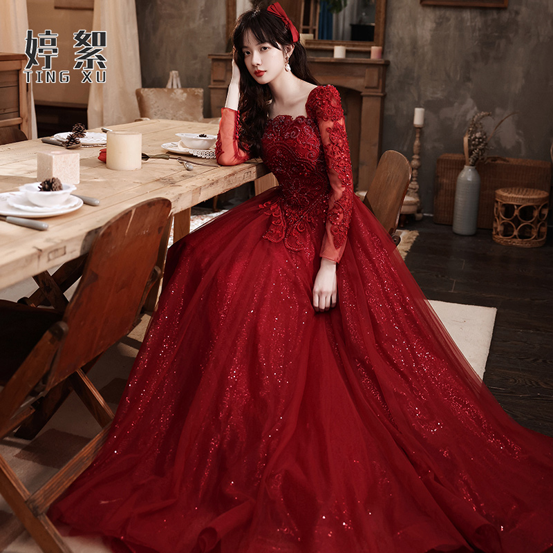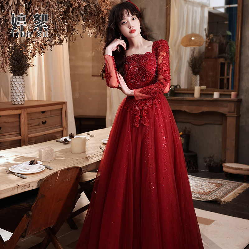 Toast to the bride 2022 new normal times can be worn with wine red color betrothed dress Dress Lady Temperament Banquet Spring Summer
