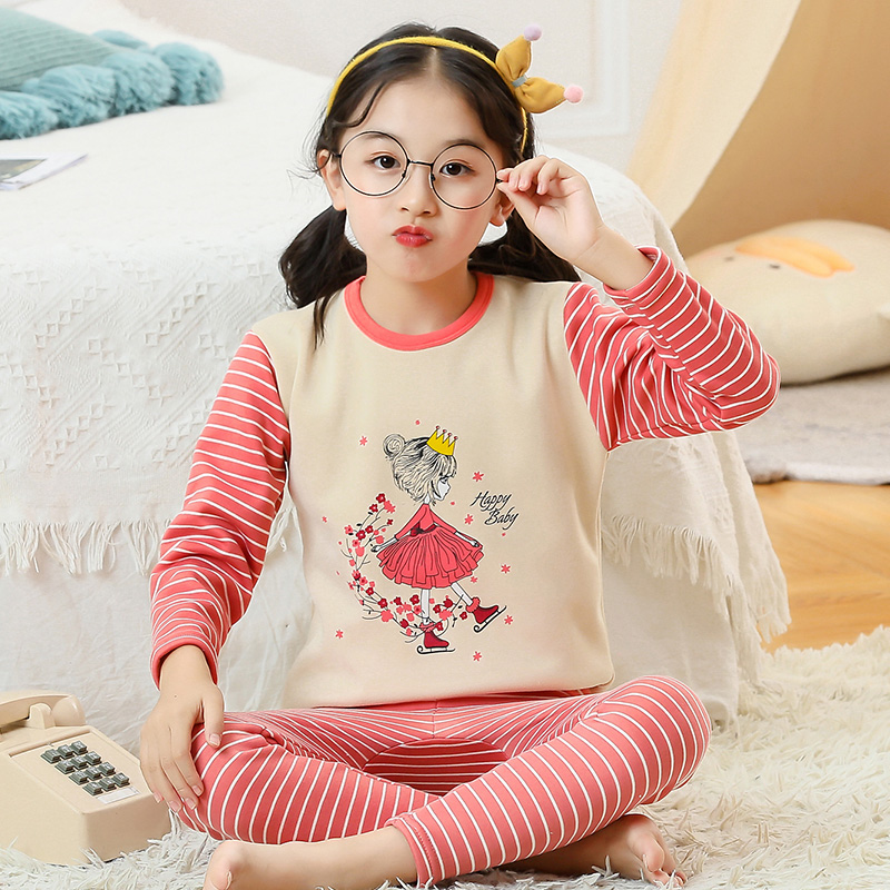 Children Warm Underwear Plus Suede Thickened Girl Boy Autumn Winter Home Conserved Baby Gushed Warm Clothes Suit