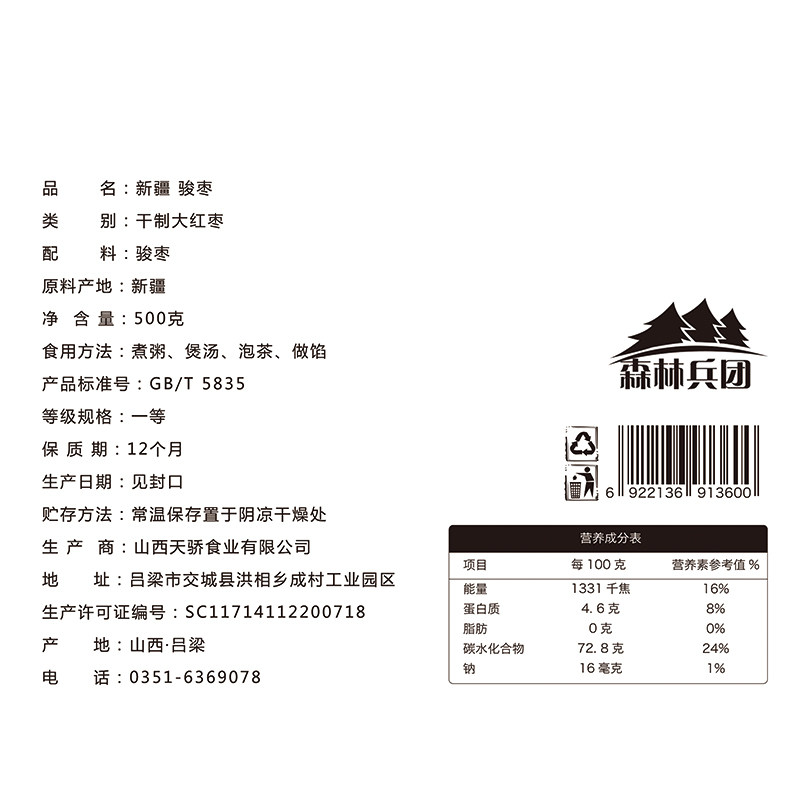 Tianjiao Red Forest Regiment Xinjiang Date Jun Zaozao 500g * 2 saucepan soup Zaozao Boiling Porridge Raw raw material Zero Bubble Water