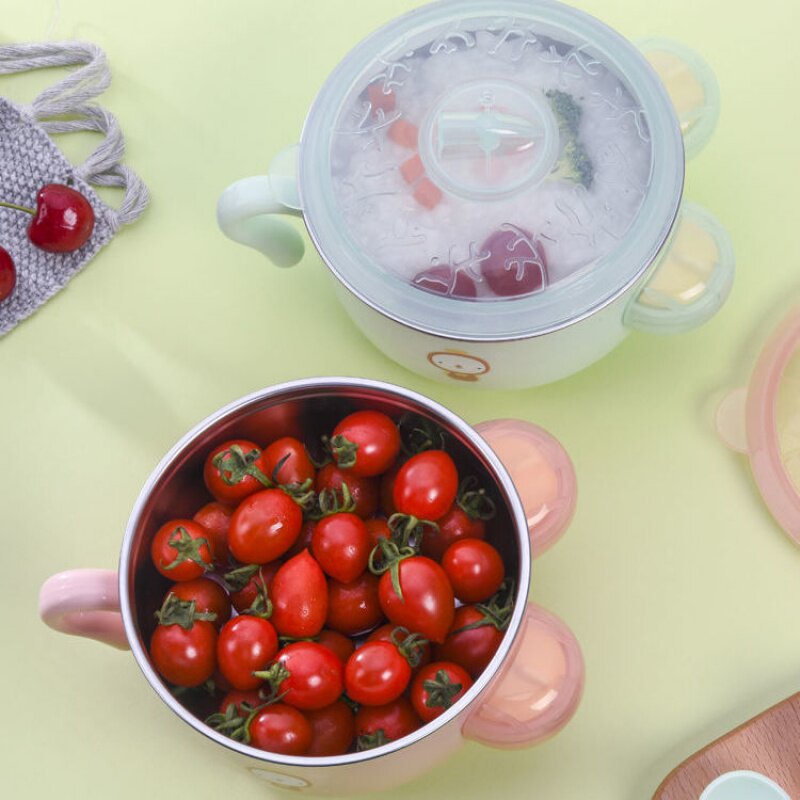 Children's Tableware Infant Stainless Steel Cute Cartoon Bowl Portable Baby Bowl Suction Cup Tableware Set