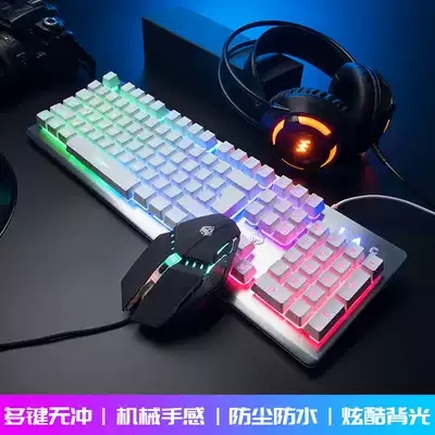Mechanical feel keyboard Desktop computer game e-sports external device chicken eating wired mouse set Notebook external mute silent office dedicated typing net red girl cute usb keyboard and mouse