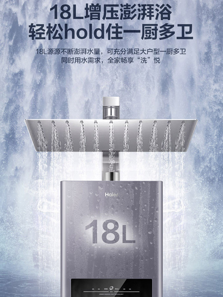 Haier gas water heater zero - cool water household natural gas strong drain three - pipe 18 liter 16 L intelligent thermostat large water