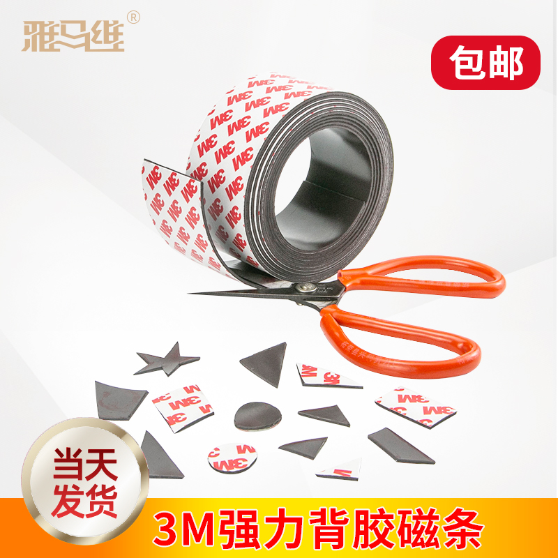 3M adhesive-backed strong magnet strip bar magnet patch rubber strip magnetic strip magnet teaching width 10x thickness 2mm