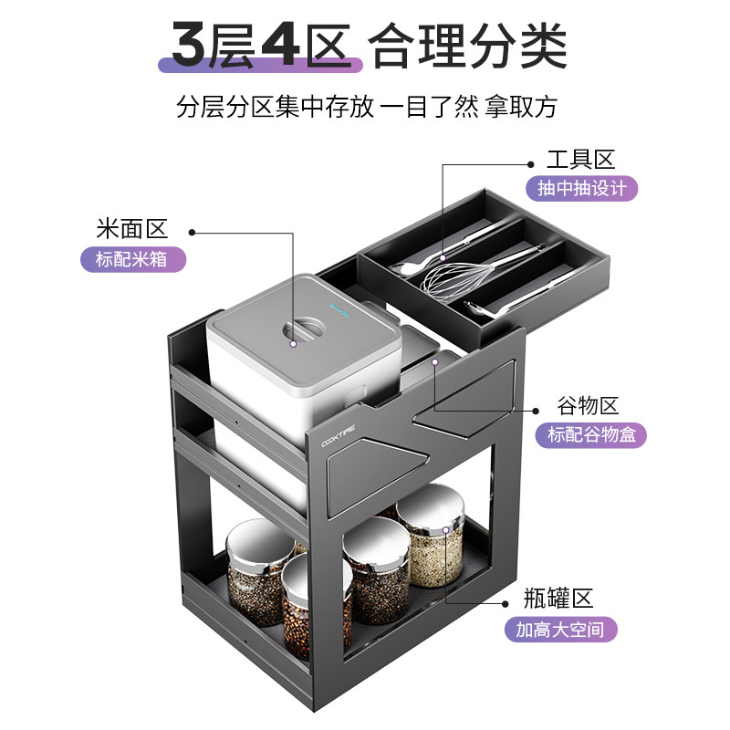 Cool Too Magic Grain Pumping Whole Cupboard Pull Basket Domestic Embedded Rice Box Kitchen drawer Grain Intake Basket