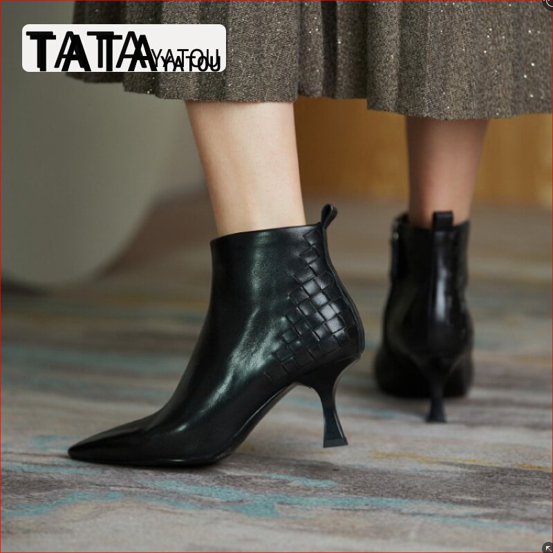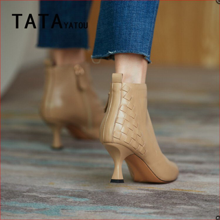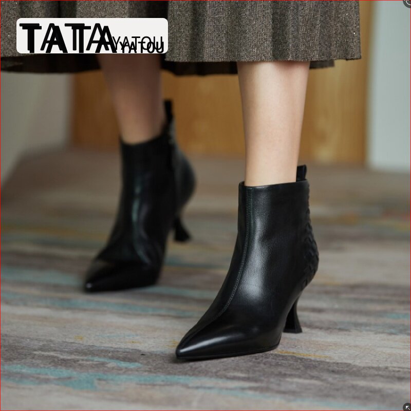 TATA YATOU He's girl girl shoes pointed little short boots woman 2021 New leather fine heel high heel single boot