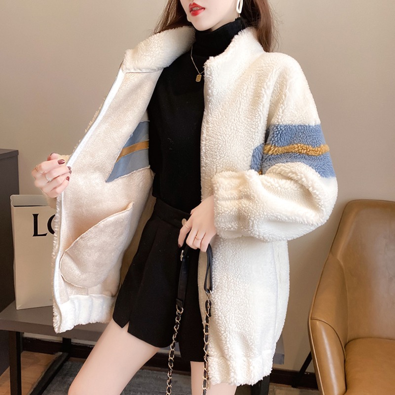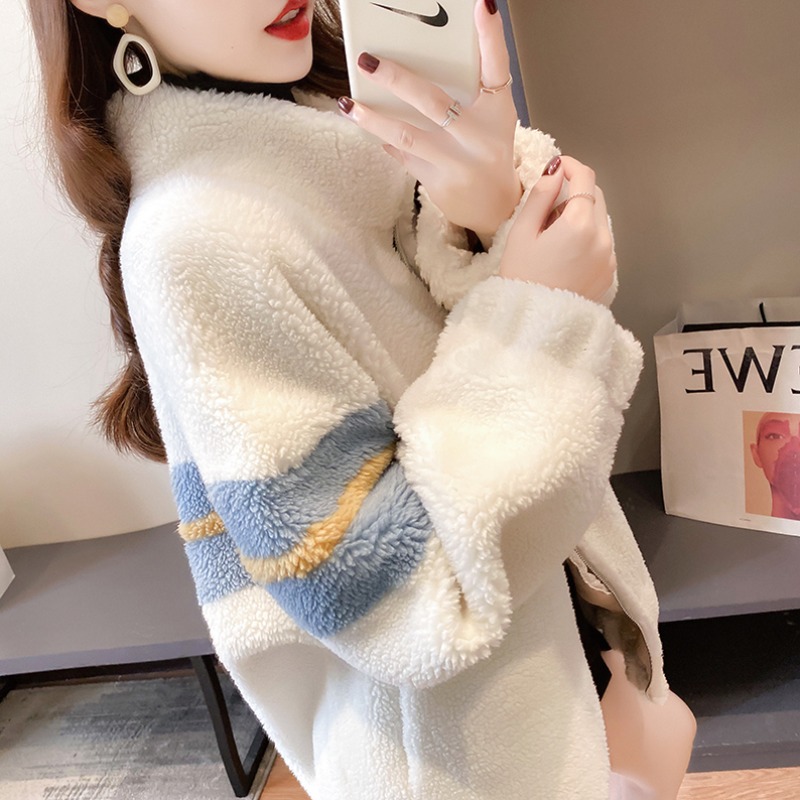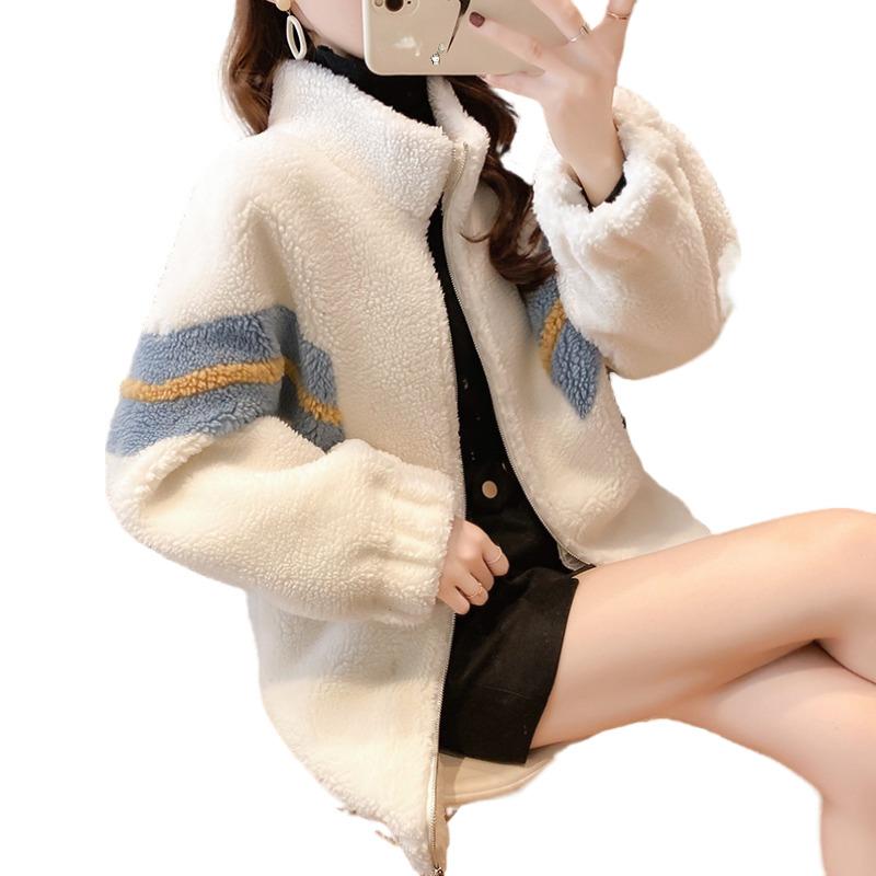Lamb wool coat female winter fur integrated 2021 new Korean version loose splicing thickened lamb fluff fur coat