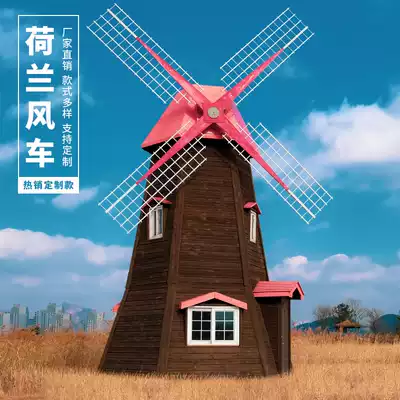 Factory direct outdoor large anticorrosive wood Dutch landscape windmill Scenic Park real wooden electric rotating ornaments