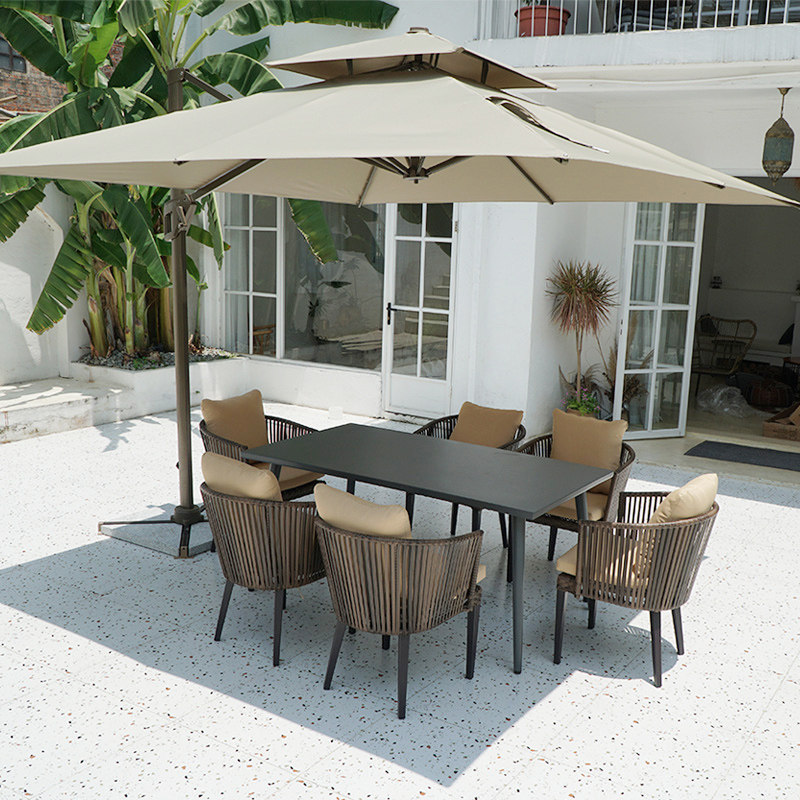 Outdoor table and chairs outdoor swing rattan chair balcony leisure chair courtyard open-air garden Nordic rattan table and chair umbrella three-piece set