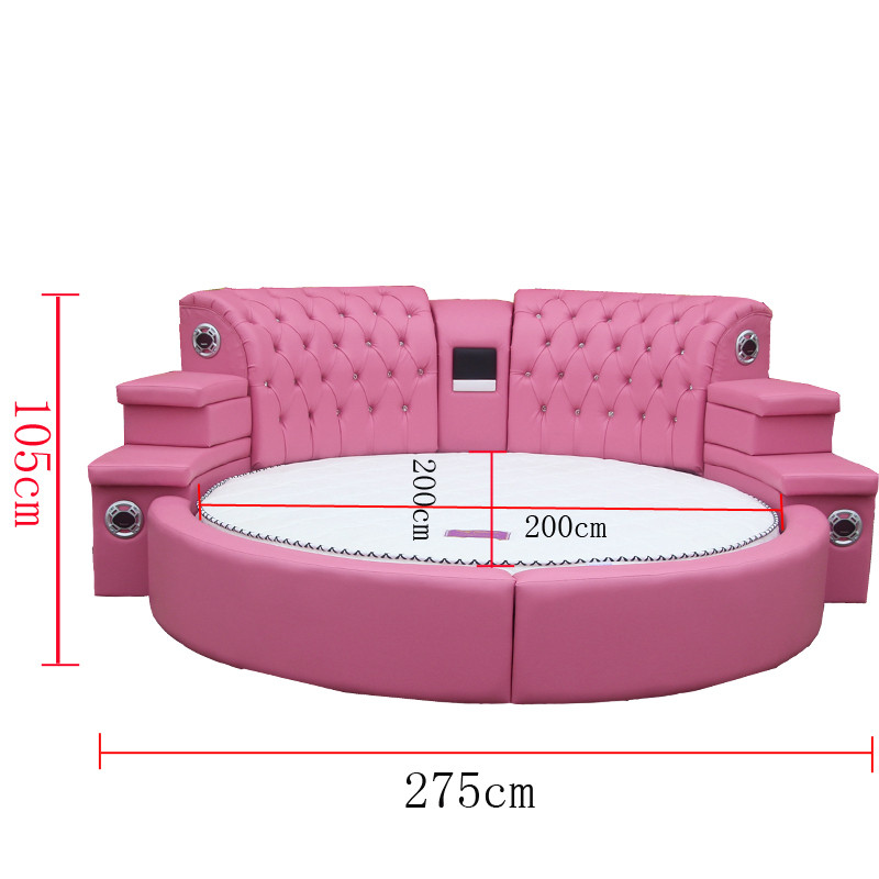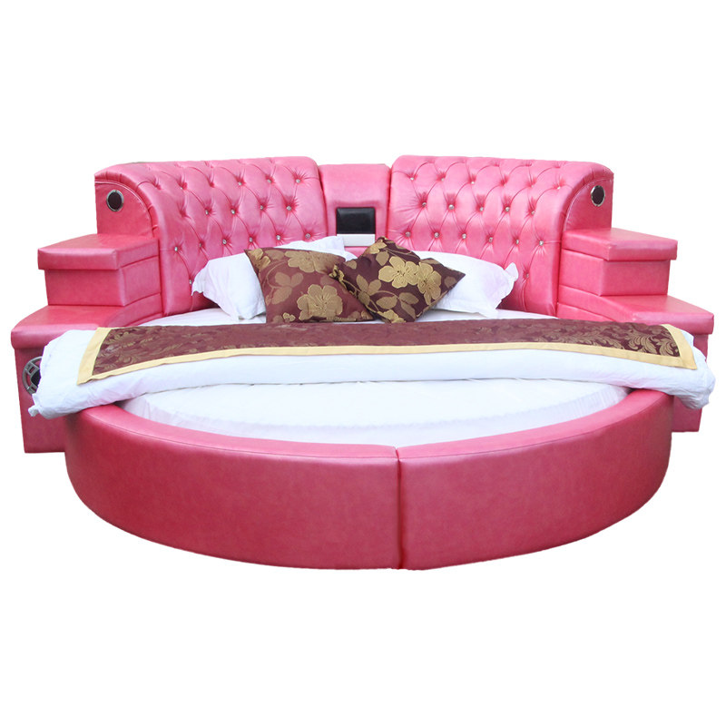 Round bed double couple bed electric vibration bed simple modern multi-function audio massage large round bed solid wood mesh red
