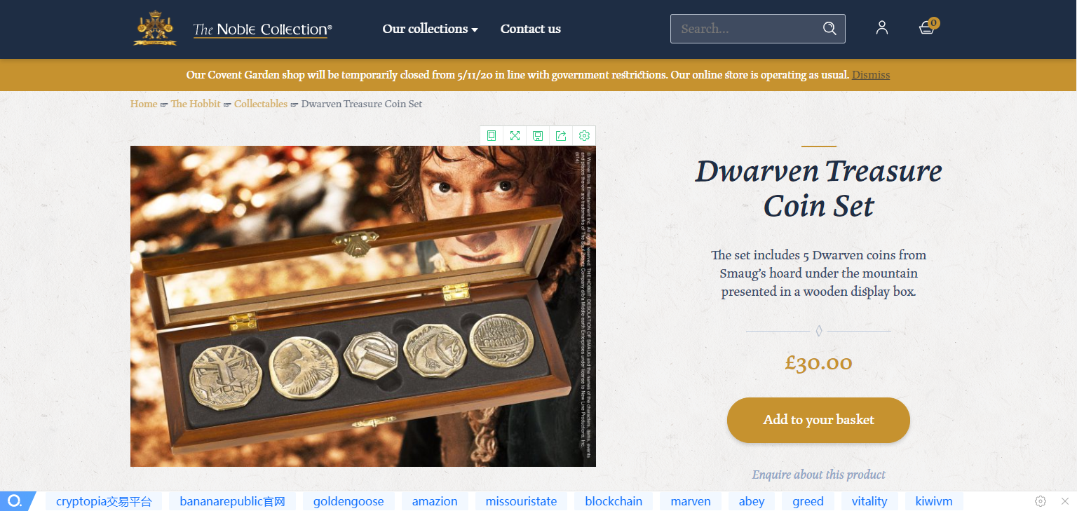 Genuine Lord of the Rings Hobbit Perimeter Genuine dwarf Treasure Coins Numismatic Numismatic Set Original Reengrave Collection