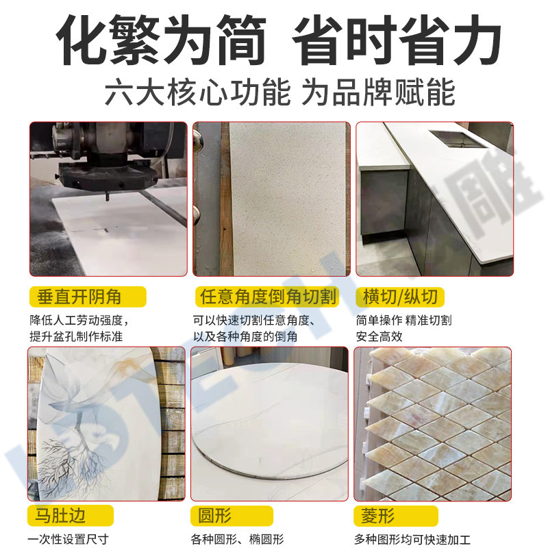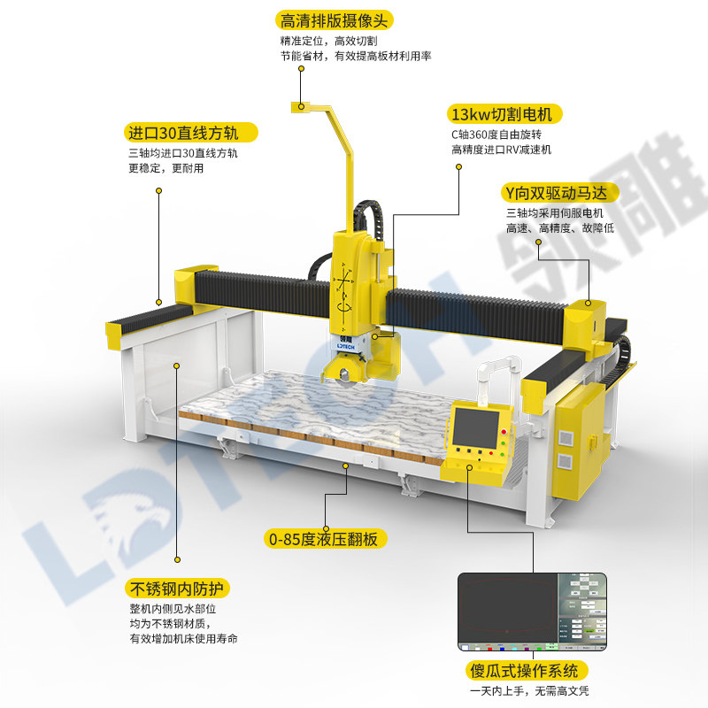 Quartz stone cutting machine five-axis bridge cutting CNC machining center equipment back arc water retaining table opening basin hole