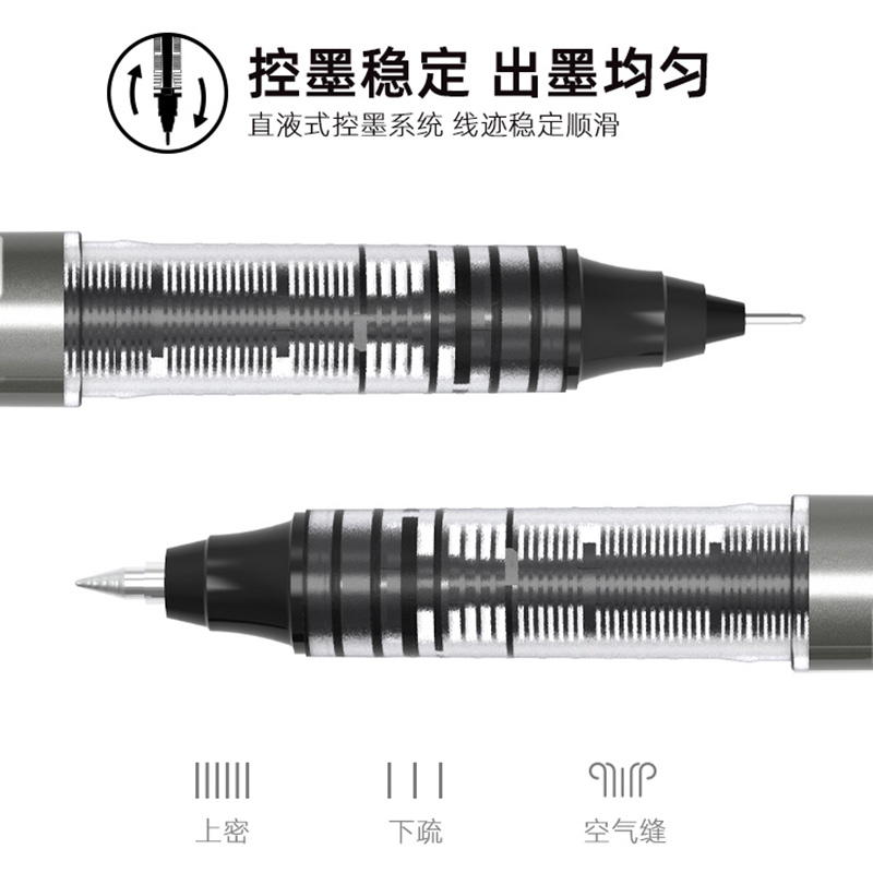 Bullet Straight Liquid Pen Black 12-piece box (send highlighter)