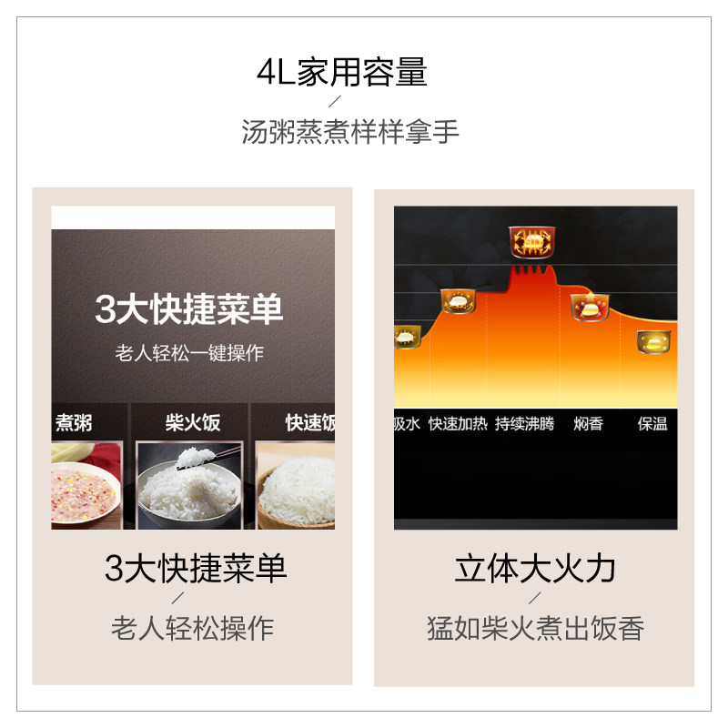 Beauty electric rice cooker Home Cooking Multifunction 4L Intelligent reservation Large-capacity Ball Kettle Firewood for non-stick electric rice cooker