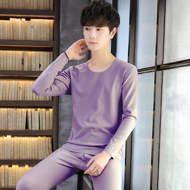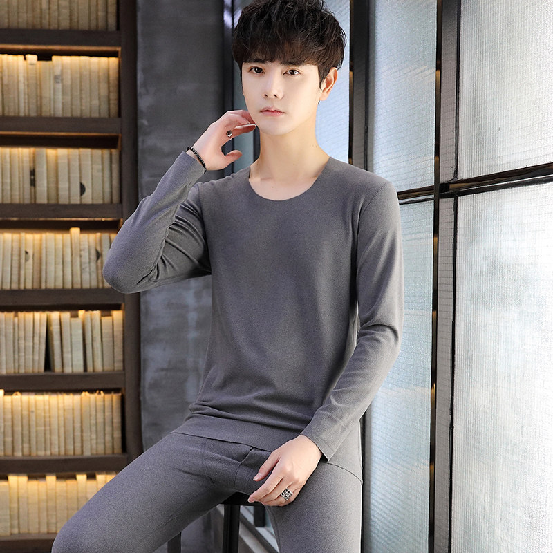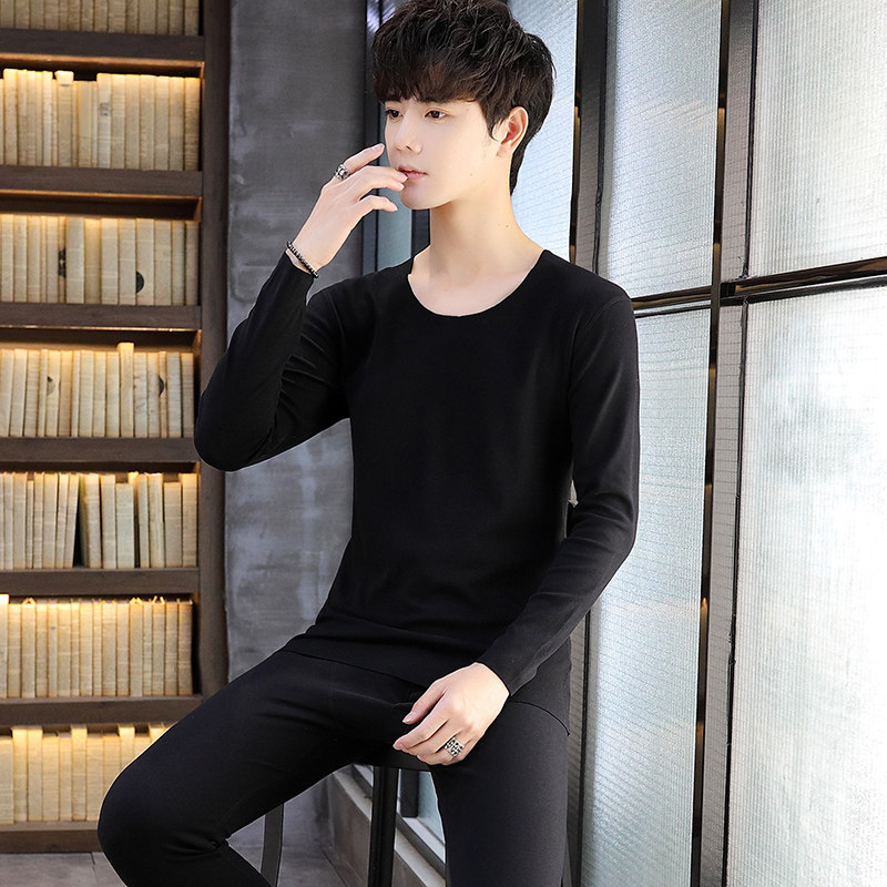 Autumn and winter teenagers traceless heat clothes pants set men's base cotton sweater De velvet autumn clothes sanitary pants two-piece set