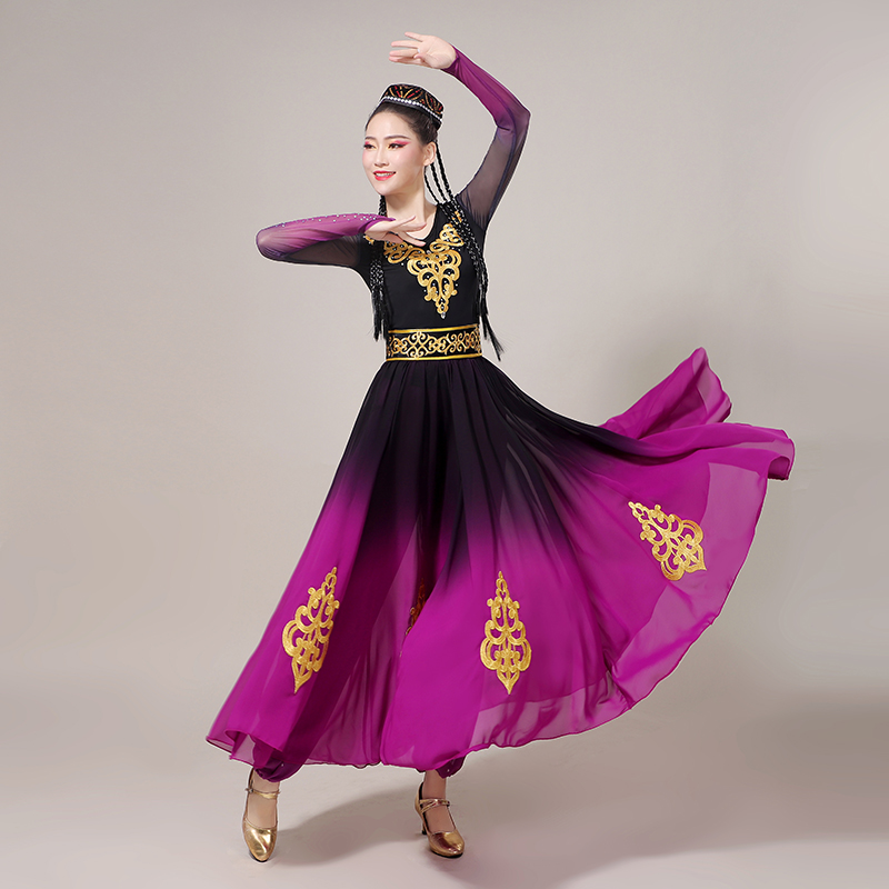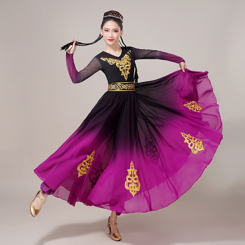 2022 new products Xinjiang Dance suits Vi ethnic group Grand Pendulum Skirt National Wind Stage Performance with Opening Performance Flutter Classical
