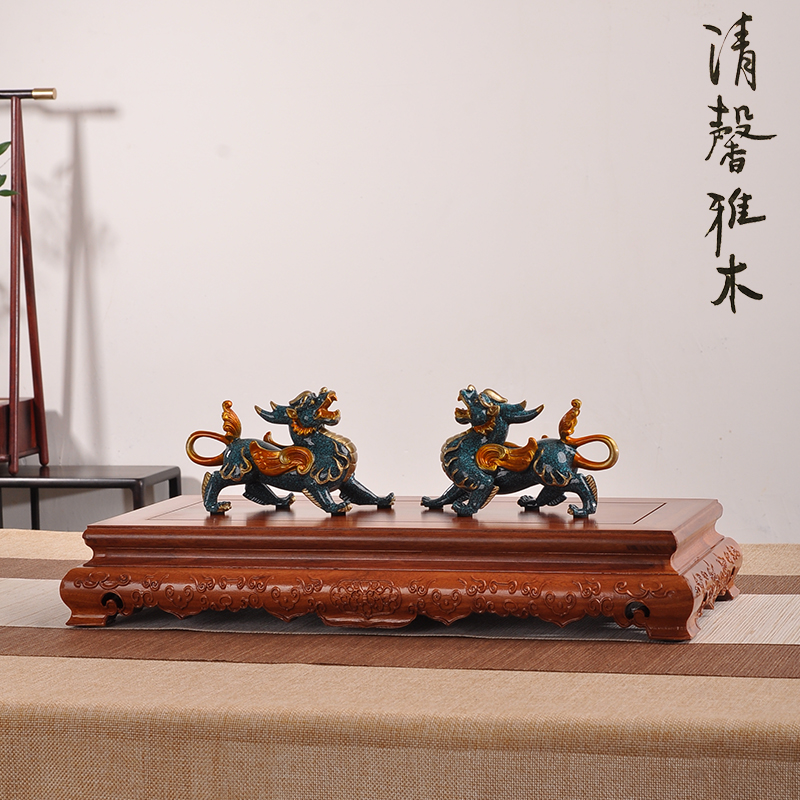 Red Wood Engraving Square Craftsmanship Gift Pendulum Flowers Dow Bronze Ware Ruyi Pendulum base solid wood Flowerpot Jingchishi Solid Wood shelf