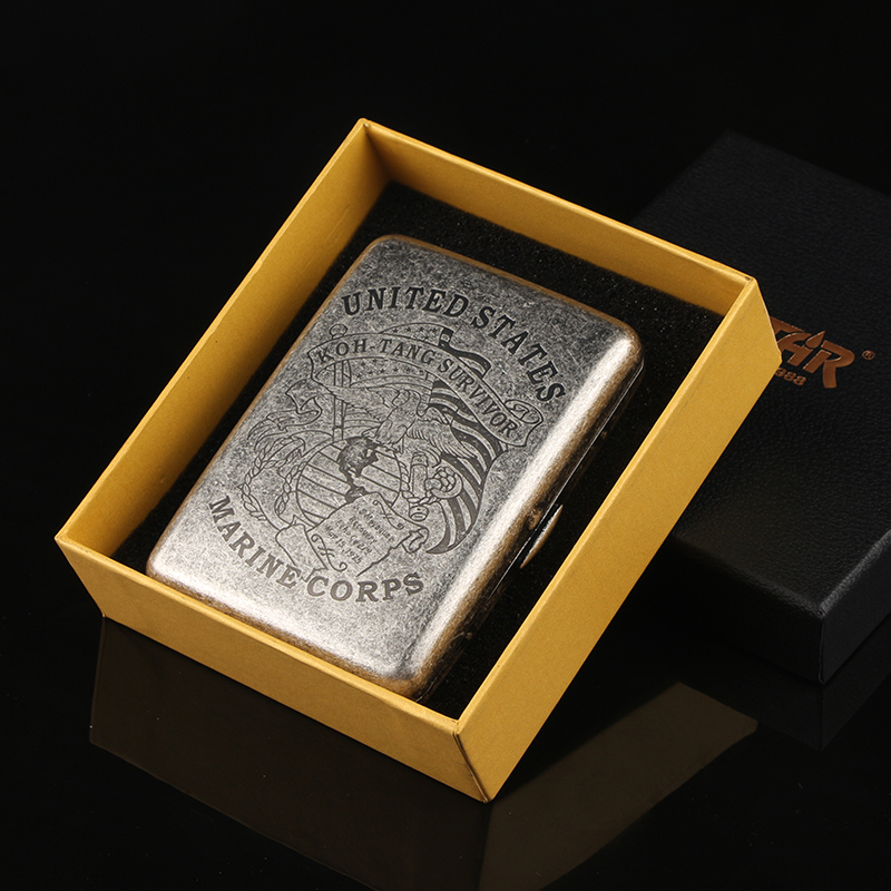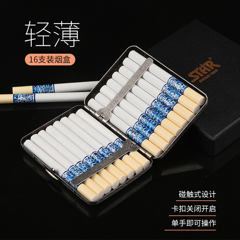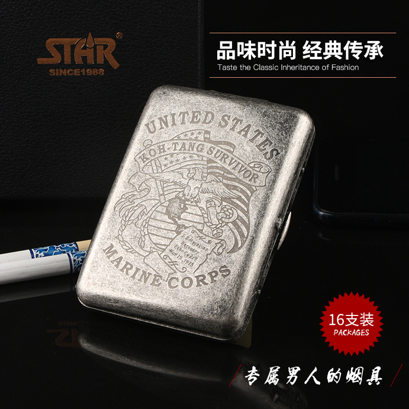 High-end men's and women's portable pure copper cigarette case 16 packs ultra-thin automatic cigarette case personality flip navy cigarette case