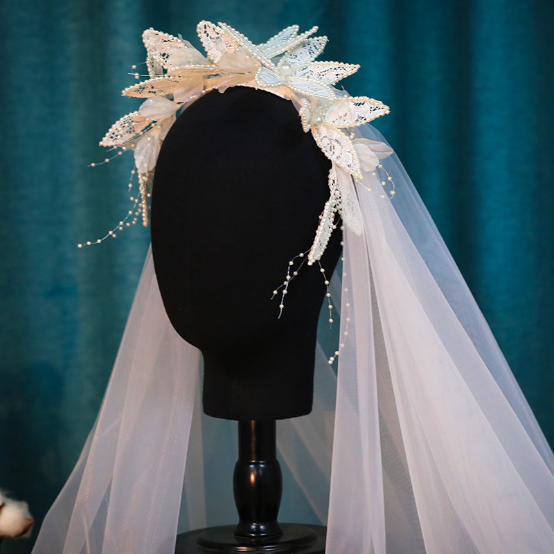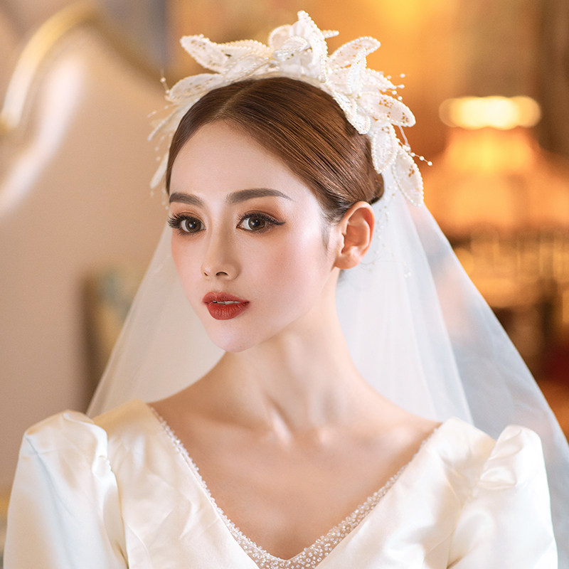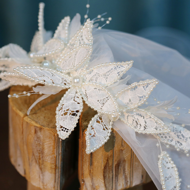 Senmei beauty bride main wedding dress headdress romantic senmei lace French short style headdress wedding accessories