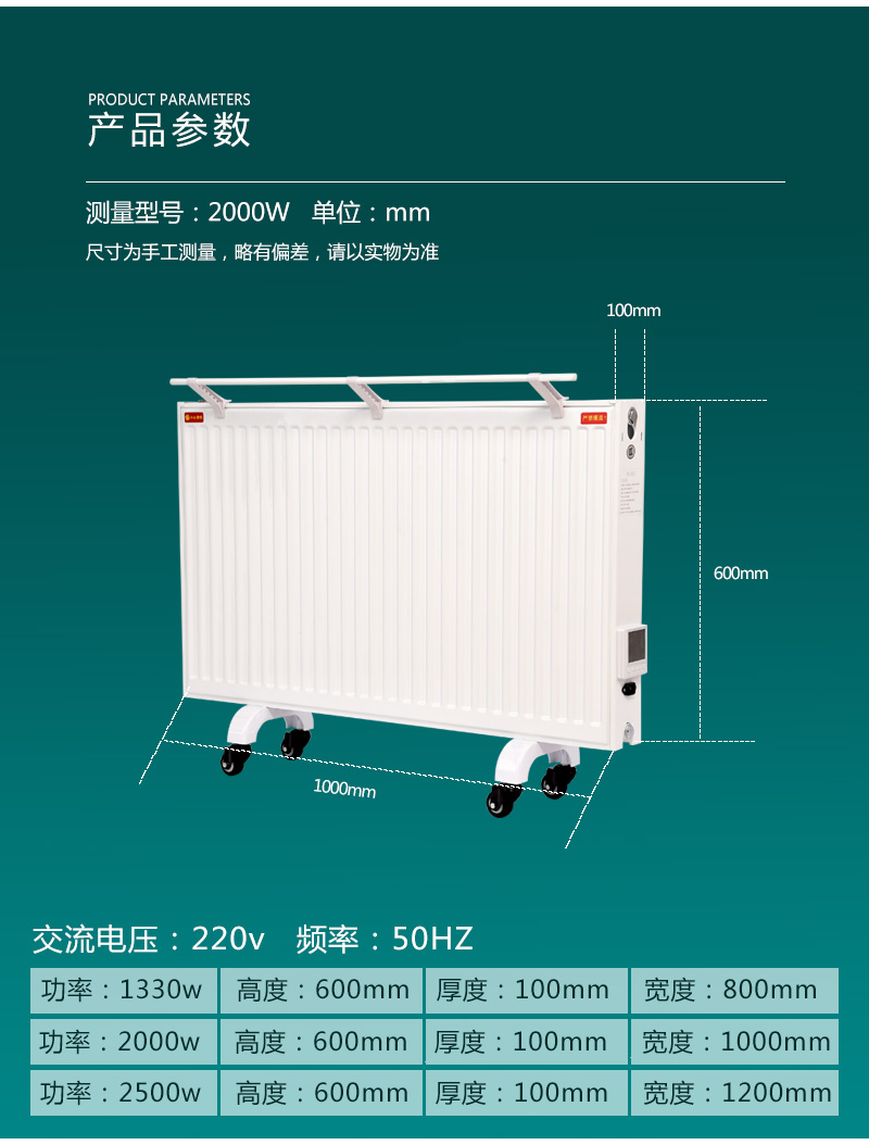 1330W add water section heating 8-13 m² 2000W add water section heating 15 -20 m² 2500W add water to heat 18-25 m² extremely cold ground