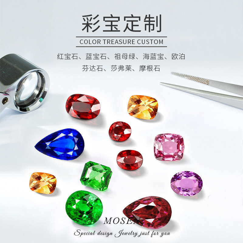 Sumori Jewelry Rainbow Jewelry Custom Ruby Sapphire Emerald Pink Sapphire Loose Stone Ring Women's Necklace Bracelet