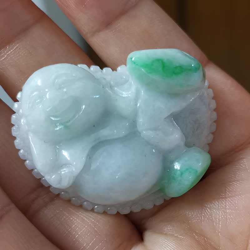 Natural Old pit emerald jade Moulder Smiling Mouth Frequently Open Jade Buddha Sending Certificate only this one 3 9 * 3 9
