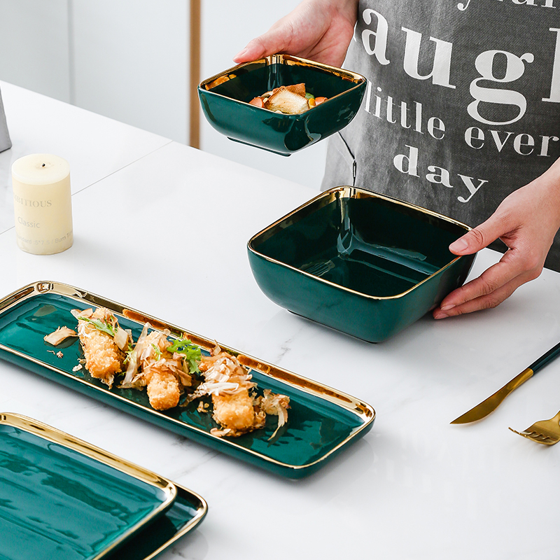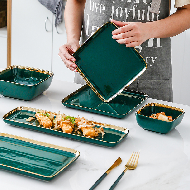 Nordic plate rectangular strip plate ceramic snack plate Western plate bowl creative snack Japanese creative sushi plate