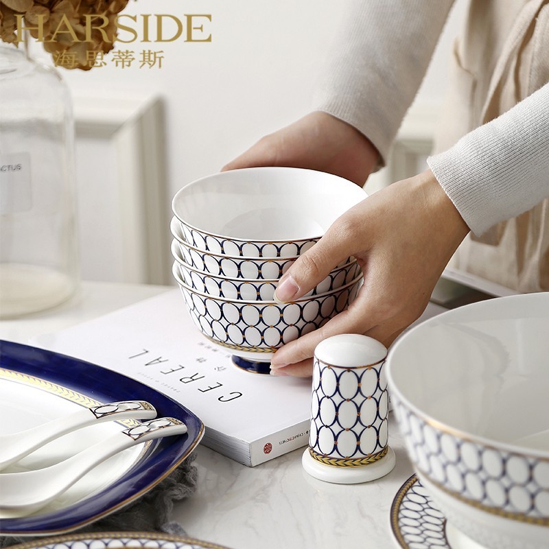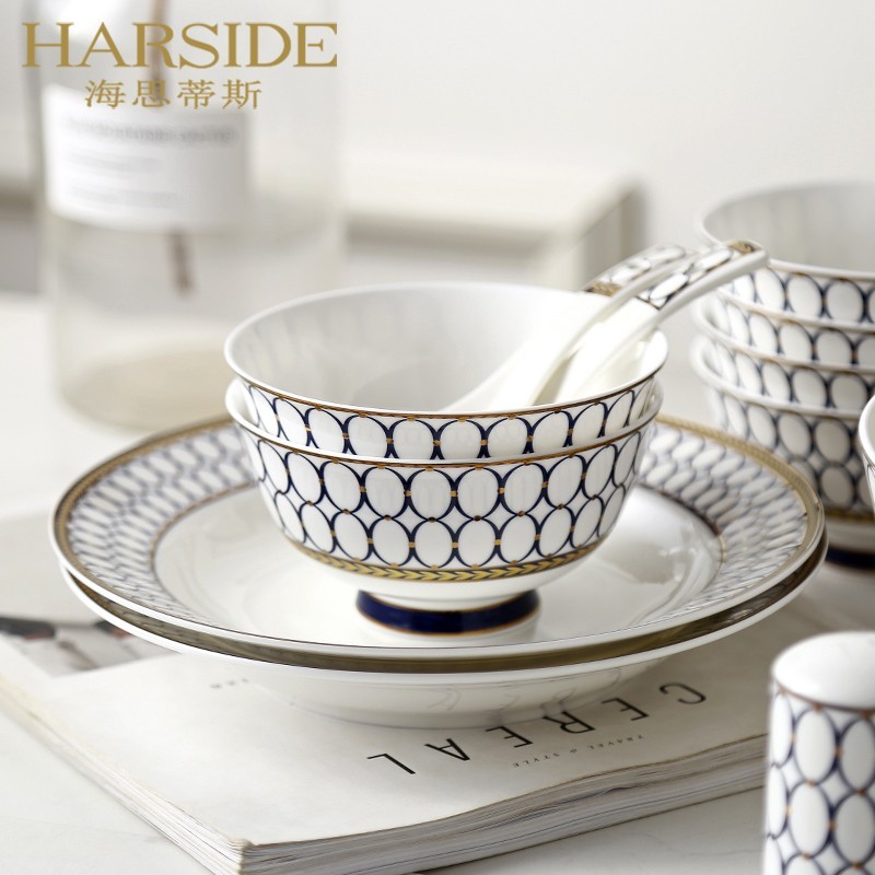 HARSIDE Nordic style simple plate bowl home creative bowl set home 6 people high-grade bone china tableware