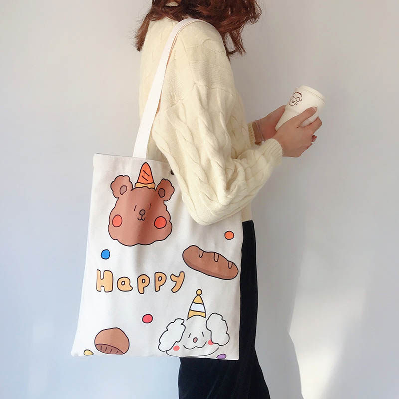 Small Japanese Bear Bread Canvas Bag Single side pattern