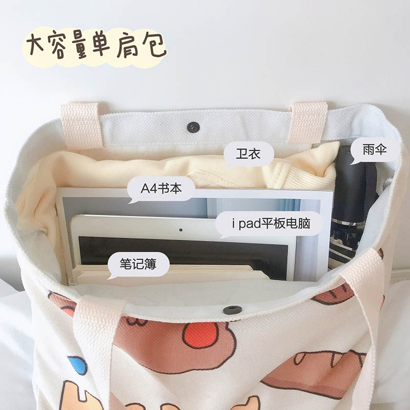Cartoon Bear Canvas Bag Female Cute Japanese Single Shoulder Canvas Bag Student Pack Book Backpack Large Capacity Shopping Bag Portable