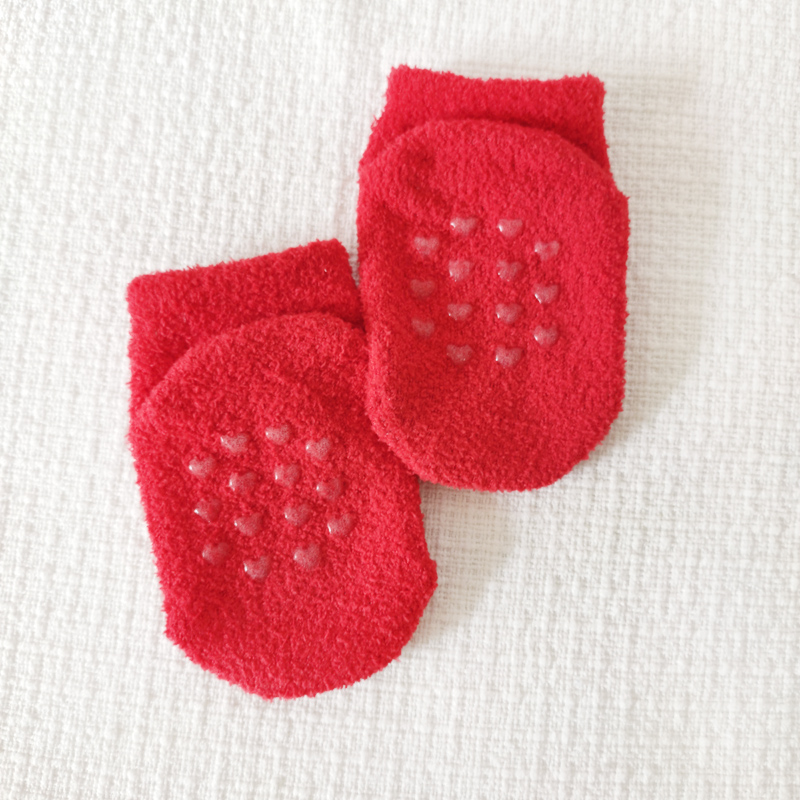 Baby Socks Autumn Winter Warm Baby Non-slip Floor Socks Pure color Coral Suede Cute Super Cute 0-2-year-old Baoyu