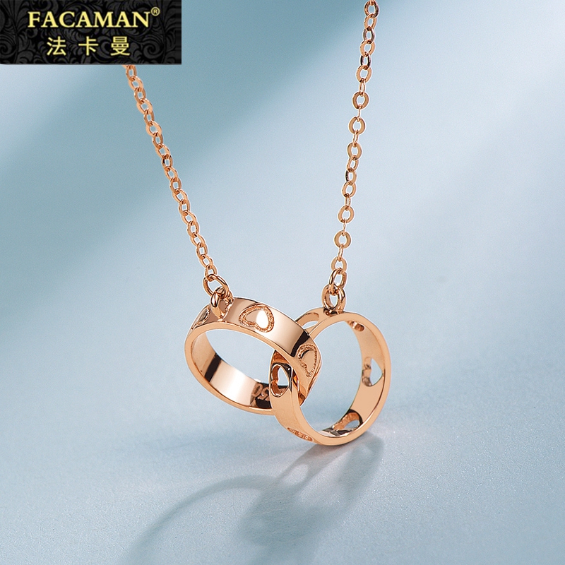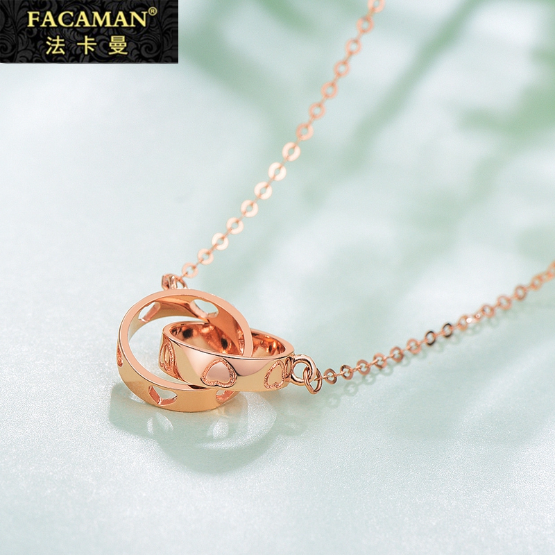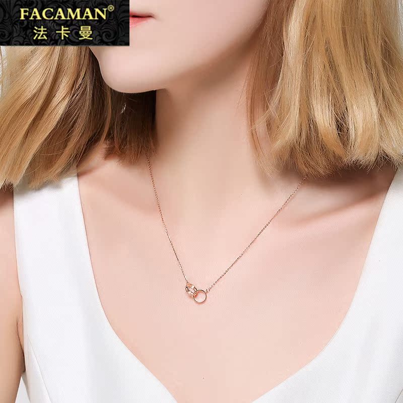 Fakaman 18k color gold double ring necklace female rose gold fine section simple personality temperament net red pendant clavicle chain