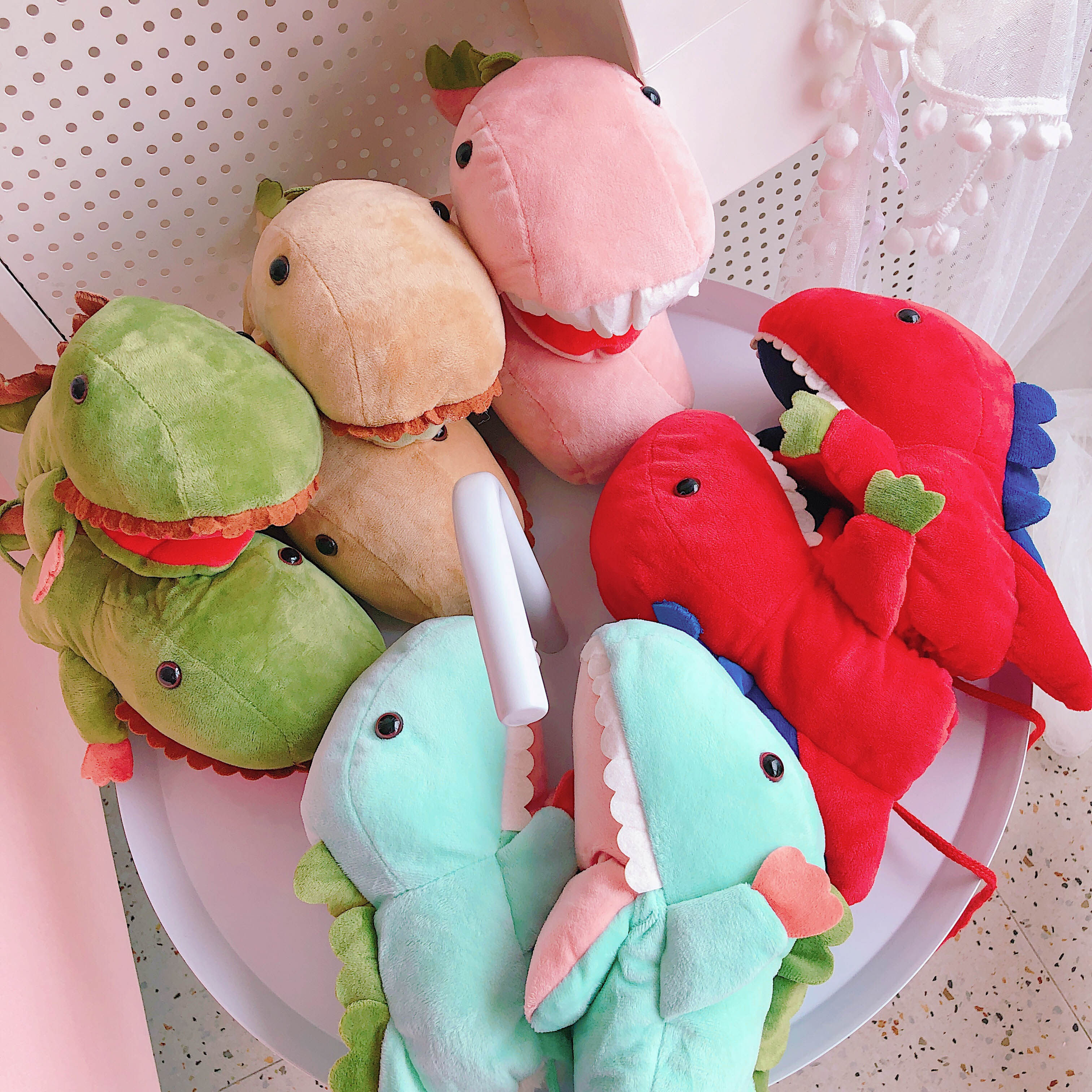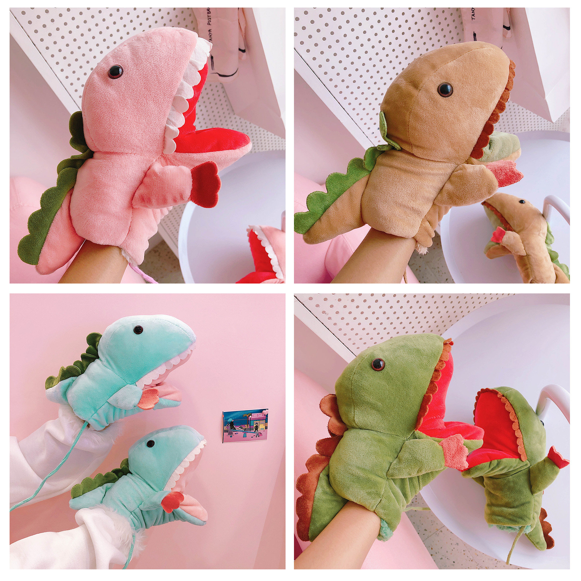 (Children's 1-6-year-old dinosaur) Green (children's 1-6-year-old dinosaur) pink (children's 1-6-year-old dinosaur) light blue (children's 1-6-year-old dinosaur) Carits-coloured adult dinosaur gloves