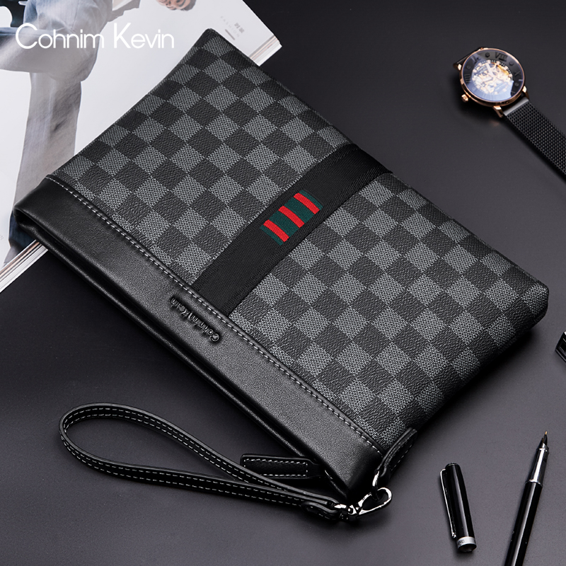 Cohnim Kevin men's hand held bag Large capacity Business casual clip handbag Handbag genuine leather male bag letter enveloping