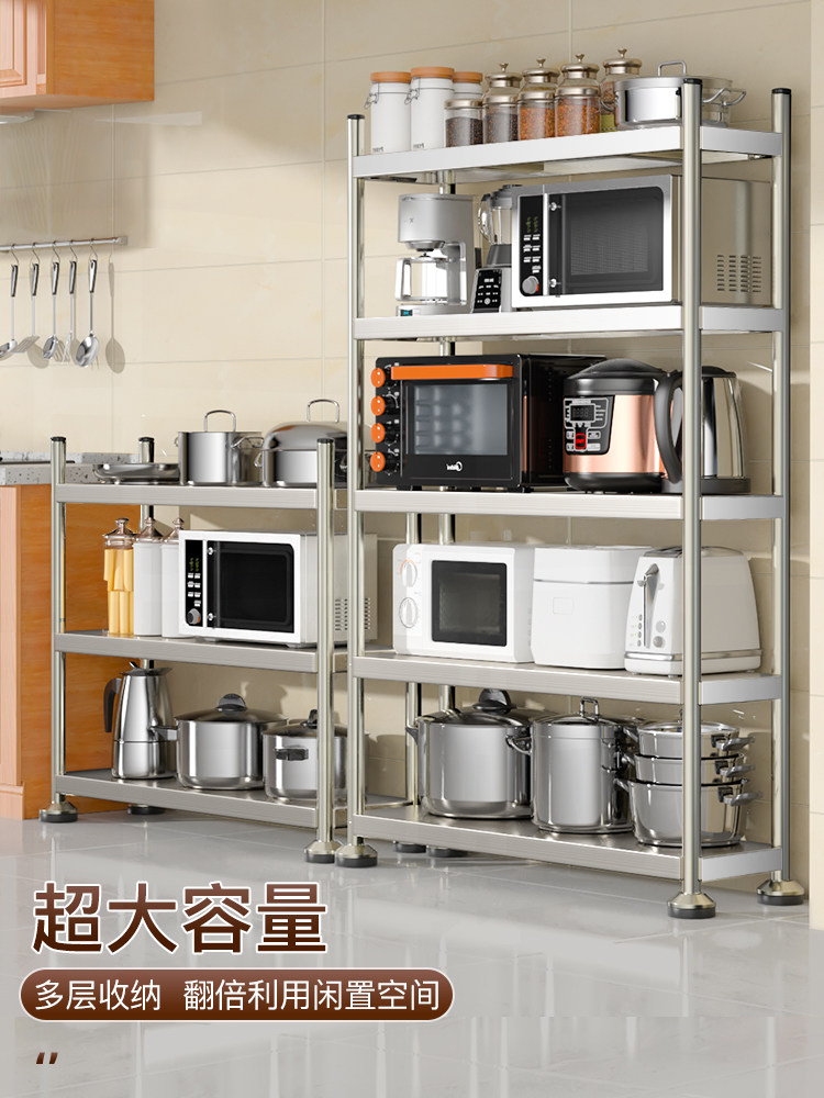 Good helper Kitchen storage rack Floor multi-layer multi-function microwave oven storage rack Stainless steel storage rack