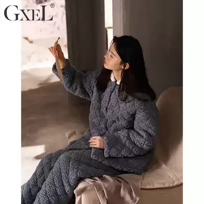 Coral velvet pajamas women's autumn and winter three-layer cotton thickened plus velvet warm winter ultra-thick flannel home suit