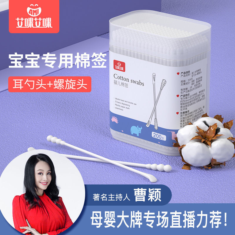 Amy newborn baby cotton swab Children's small cotton swab ear spoon head ear cotton swab stick makeup baby small head cotton swab