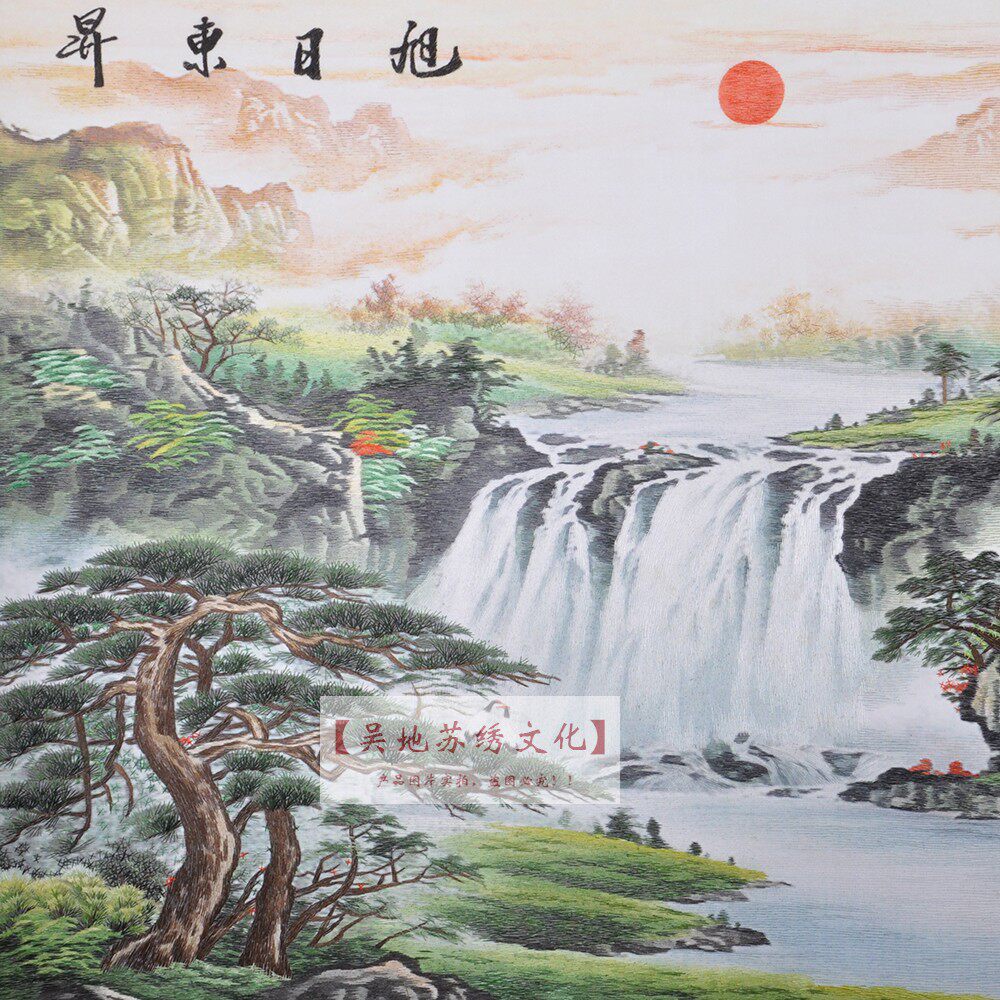 Hand-embroidered Suzhou Embroidery Finished Hanging Painting New Chinese Style Living Room Office Home Decoration Soft Decoration Atmospheric Landscape Rising Sun - Taobao