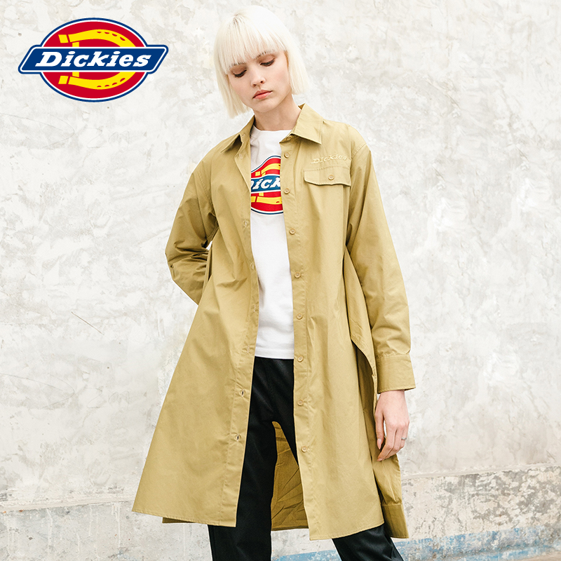 Dickieslog letter embroidery tie waist long sleeve dress Women's new shirt dress 8800