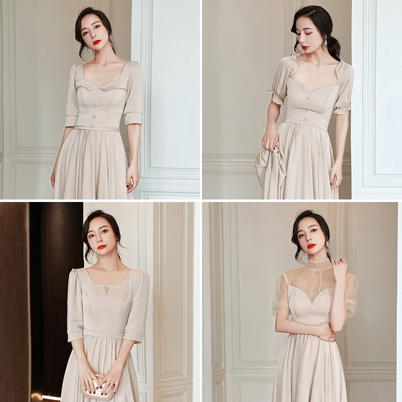 Pink Bridesmaid Dress Superior Feel 2022 New Long Sleeves Wedding Sister Group Gown Dress Woman THIN COVERED SUMMER SEASON