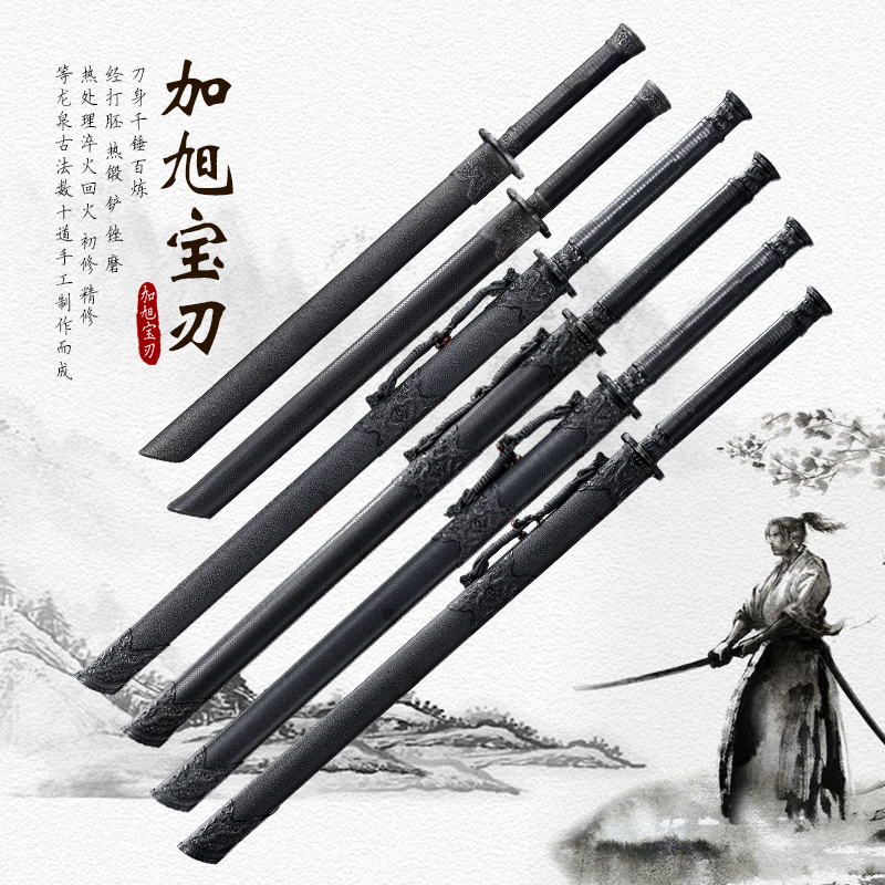 Longquan City Tang Hengknife Gashu Bao Sword Manganese Steel One Body Long Version Knife Embroidered Spring Knife Cutter anti-body cold weapon unopened blade