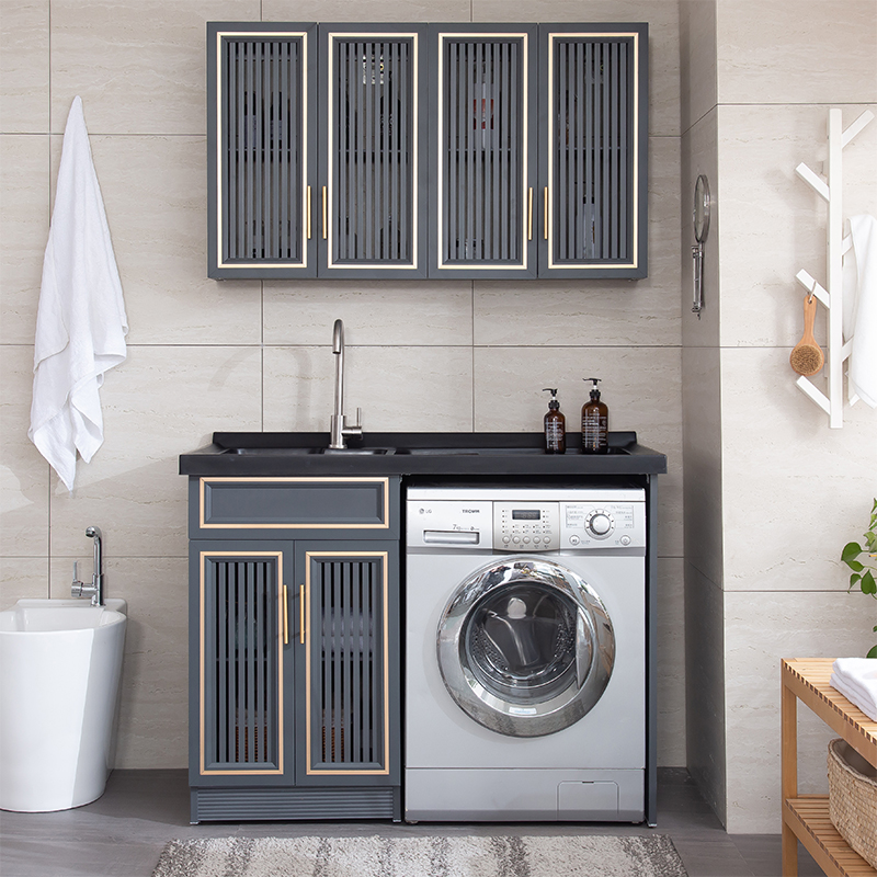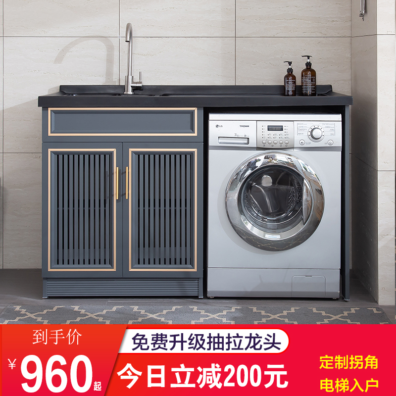 Space aluminum balcony washing machine integrated cabinet quartz stone pool groove with washboard wash basin cabinet combination washing wardrobe companion