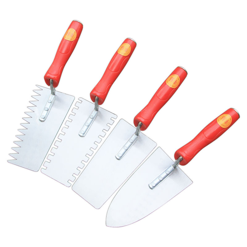 Red glue put medium gray shovel red glue put medium pointed gray shovel red glue put medium left small sharp tooth gray shovel red glue put medium right small sharp tooth gray shovel red glue put medium bilateral small sharp tooth gray shovel red Plastic handle medium left tooth ash shovel