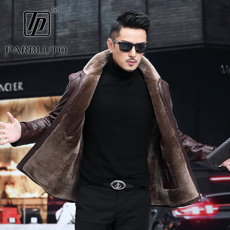 Genuine Leather Leather Clothing Mountain Goat Leather Thickened Warm Jacket Business Casual Leather Jacket Leather Jacket Fur Integrated Men Real Maine Henning