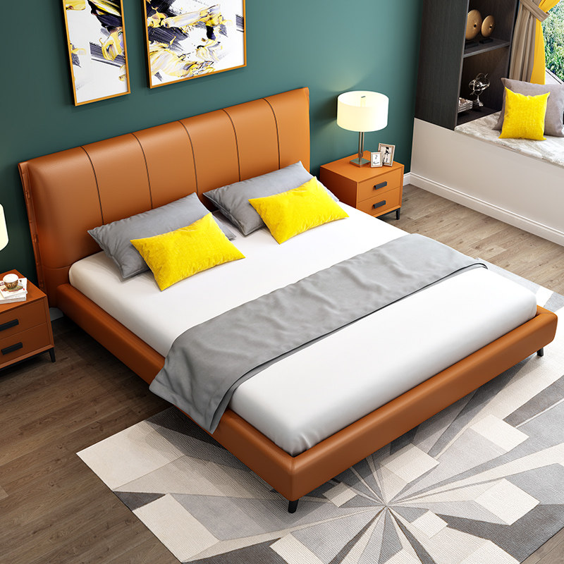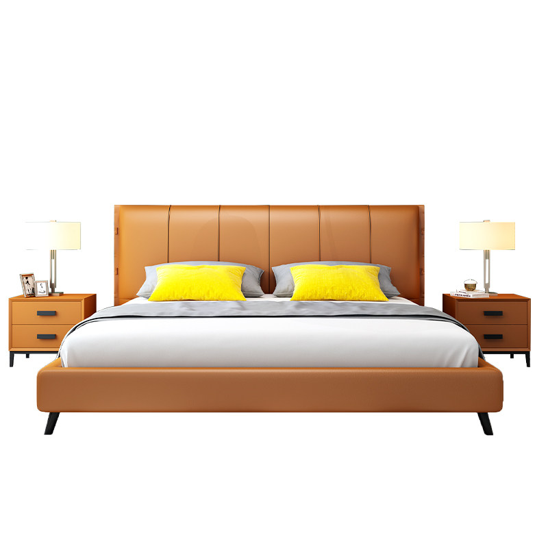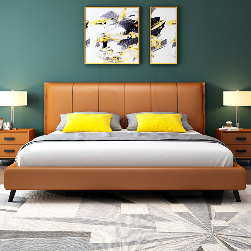 Italian minimalist bed leather light luxury modern minimalist master bedroom king bed wedding bed high-end atmosphere double bedroom soft bag style