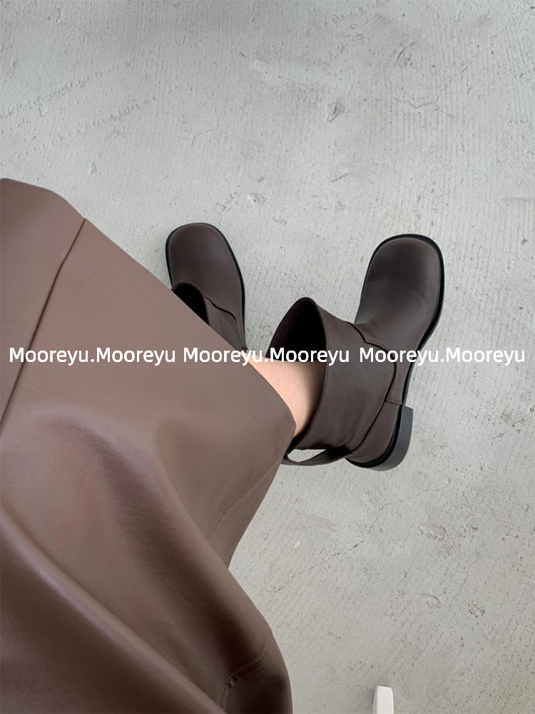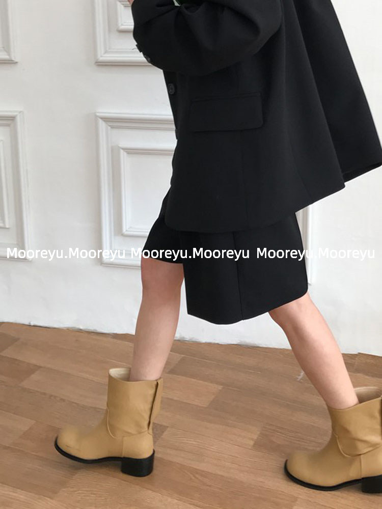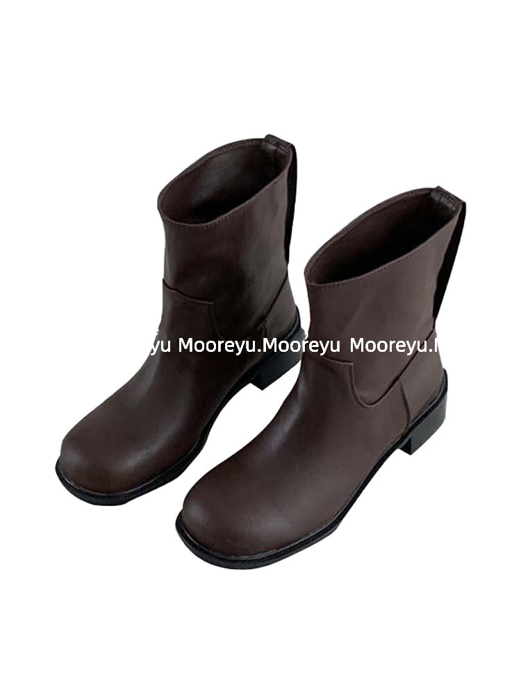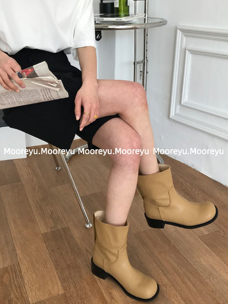South Korea's Dongdaemun ins retro niche personality models round toe thick heel short boots women's big head low heel boots