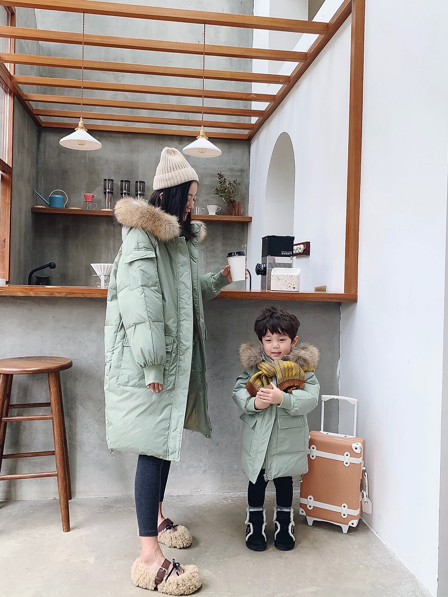 Ivan family parent-child clothing winter new parent-child cotton clothing mother-child clothing mother-daughter clothing long thick cotton coat hood foreign atmosphere