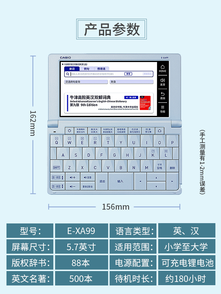 (New product) CASIO CASIO electronic dictionary English E-XA99 English-Chinese learning translation machine junior high school students xa99 electronic dictionary entrance examination research word learning machine college English