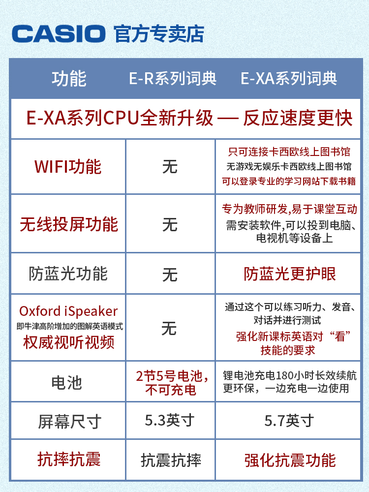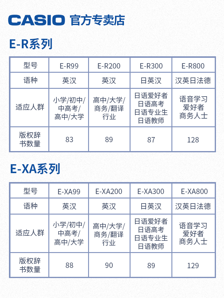 (New product) Casio CASIO electronic dictionary E-XA800 study abroad English Chinese multi-language electronic dictionary English, Japanese, French, German and Chinese learning machine translation machine dictionary translation test applicable
