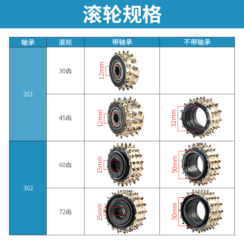 (201) 30 teeth (with bearings) (201) 45 teeth (without bearings) (201) 45 teeth (with bearings) (302) 60 teeth (without bearings) (302) 6