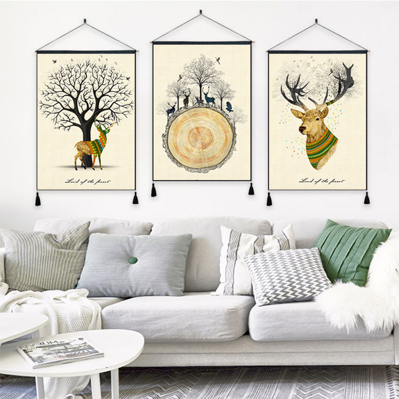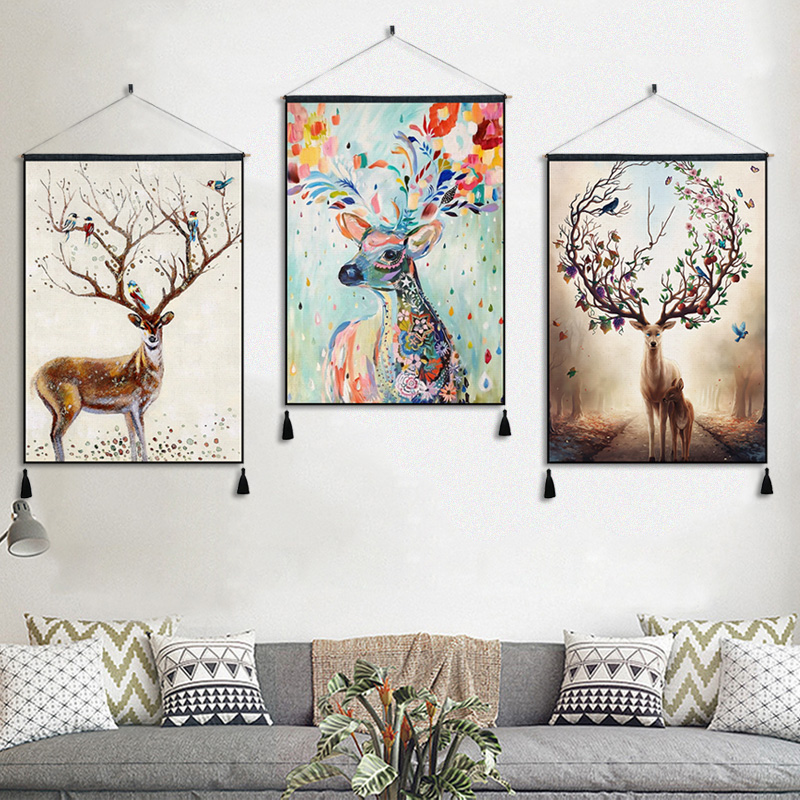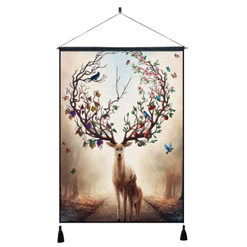 Nordic Tapestry Elk Deer Cloth Painting Living Room Genguan Cloth Art Hanging Painting Background Wall Decoration Painting Dining Hall Wall Painting Hanging Cloth